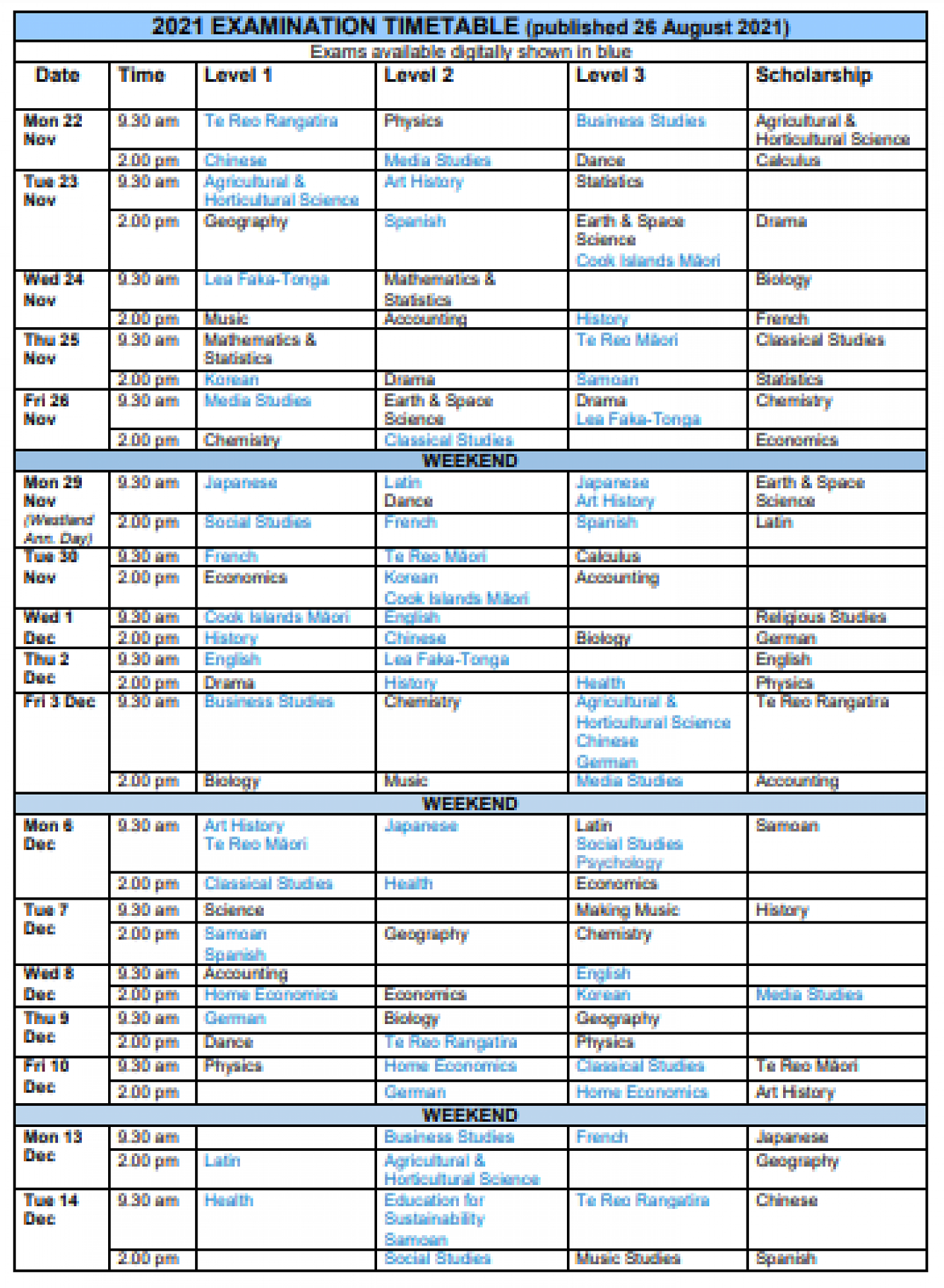 The UPDATED NCEA Examination Timetable can be viewed below and a downloadable pdf. version can be found at the bottom of this article.