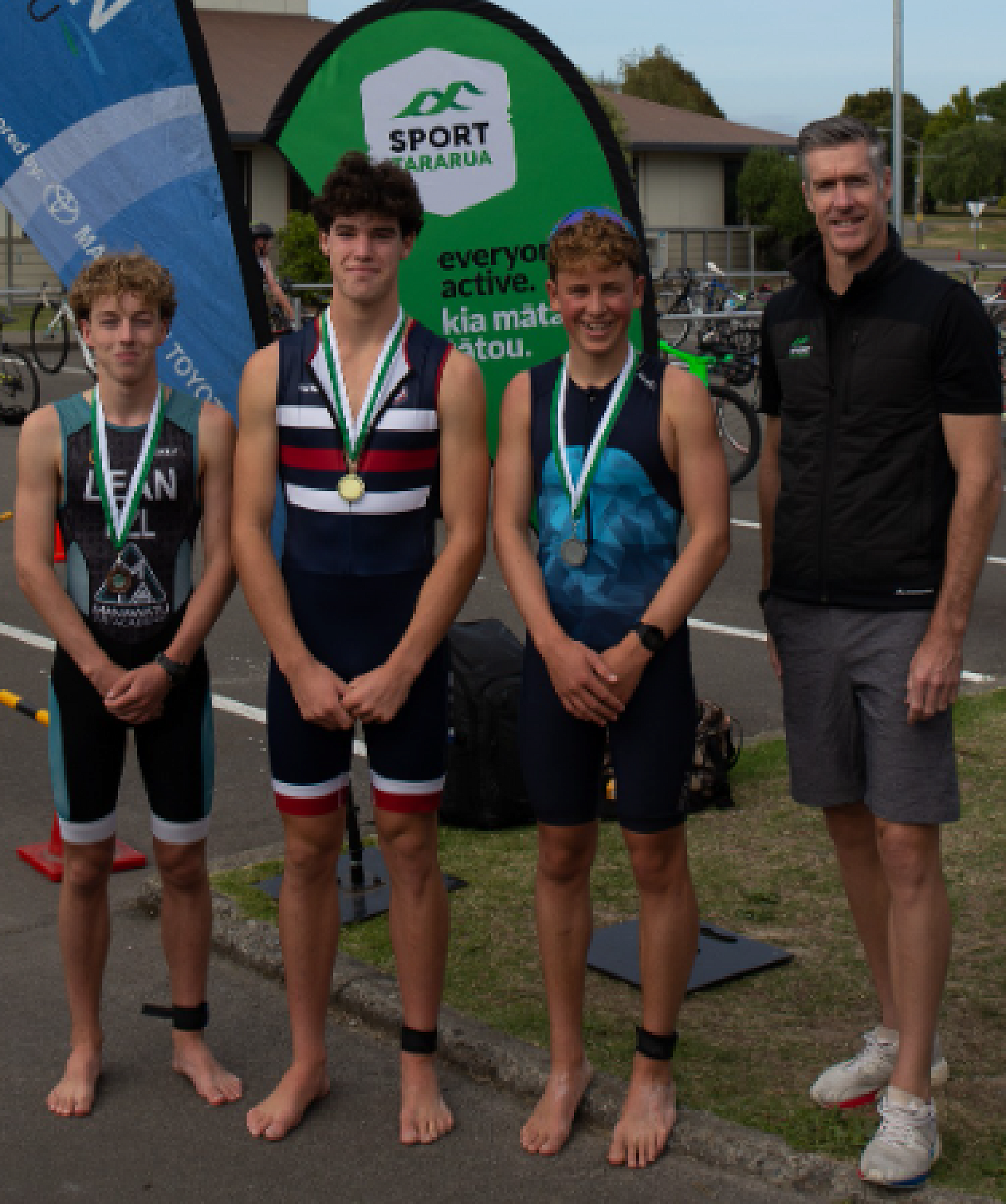 Well done to the young men who competed in the Manawatū Schools Triathlon championships, achieving some very impressive results: