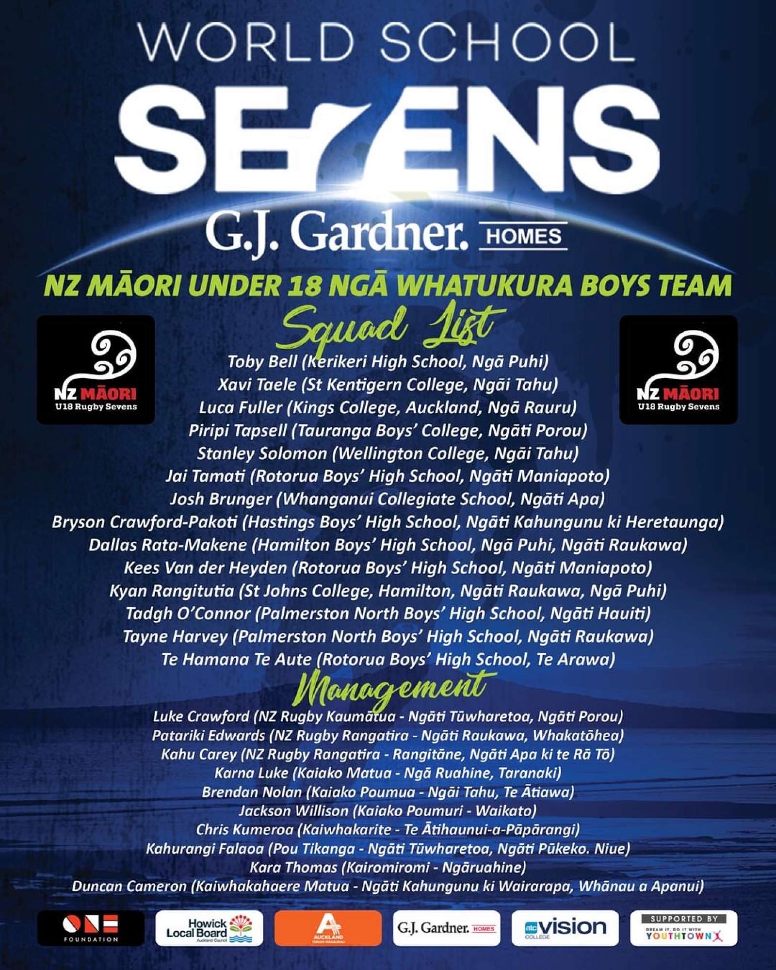 Congratulations and good luck to Fletcher Carpenter who has been selected in the New Zealand Under 18 Boys Sevens team and to Tayne Harvey and Tadgh O’Connor who have been selected in the New Zealand Māori Under 18 Ngā Whatukura (Boys) Sevens team. Both of these teams will compete in the 2022 World School Sevens in Auckland from 17 to 18 December.