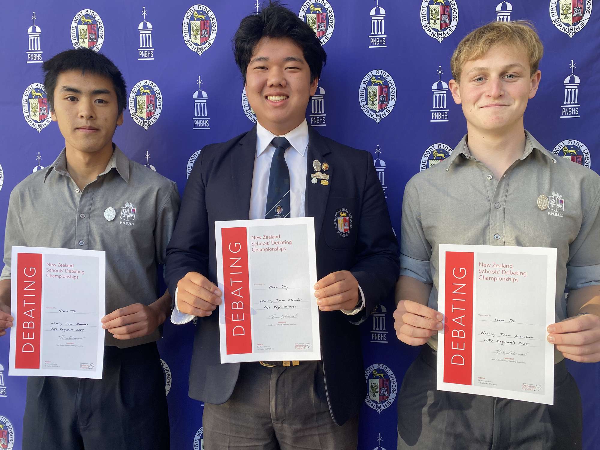 After three fierce rounds of debating, and three consecutive victories, PNBHS was named as one of two schools who would soon battle it out for first place. The opposition was New Plymouth Boys’ High School. The motion would be that “this house would provide amnesty for dictators who choose to step down from power.” PNBHS was on the affirming side, and the team employed textbook strategies to convince the adjudicator of their position. Oliver Song, as first speaker, provided the New Plymouth side with a win condition that proved cumbersome. That being, “you must prove that your side of the house provides more benefit to the people in countries run by dictators”. Aside from criminal justice, New Plymouth were unable to provide the adjudicator with any real benefits to opposing the motion. Simon Ton, as second speaker, continued to reinforce the benefits of providing a system where dictatorships could be broken down, and replaced by democratic societies by allowing them amnesty in return for giving up power. During the negating second speech, Simon Ton provided a match-winning point of interest, presenting New Plymouth with the question, “how do you think people are going to feel as soon as the current dictator is replaced by another, instead of replaced by a democratic society?”. This point of interest was left unanswered by New Plymouth and provided a convincing case for PNBHS. Isaac Fox presented a world-class third-speaker speech that left no doubt in the adjudicator’s minds as to who the victor of this debate should be. This debate was a strong display of teamwork, and each member played a pivotal role in the victory.