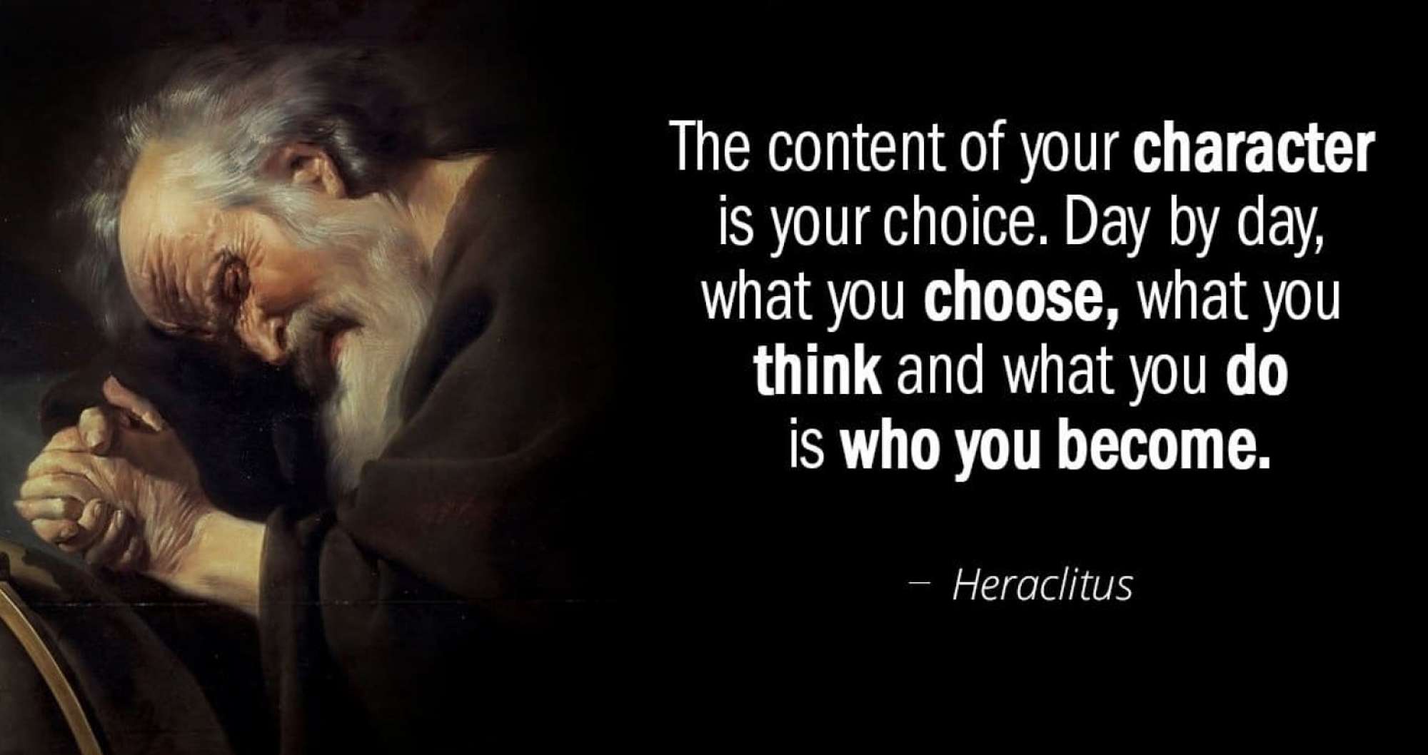 Greek philosopher Heraclitus stated that a man's character is his fate (or destiny, depending on the translation). What he meant was our character decides everything. It determines who we are and what we do. Develop good character and all will be well. Fail to develop good character and nothing will be right. As we experience the inevitable ups and downs, success, failures and challenges that life throws at us it can be hard to keep this in mind. Ultimately though we need only care about our character as everything else comes from it. “Life is short,” Roman Emperor Marcus Aurelius said, and “the fruit of this life is a good character.” It is true in reverse too: A good life is the fruit of good character. Fatum Ingenium Est – Character is fate.