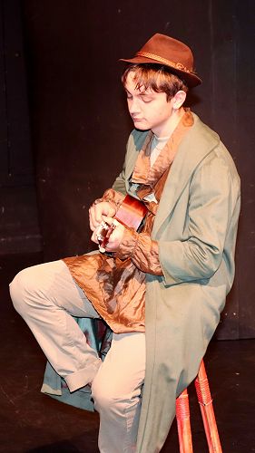 Morgan Bradley’s brief was to give us a hippy musician - so laid back as to be horizontal. Nick Dewhurst was a strongly voiced, powerful and dark Orsino, truly “In nature as in name”, who softens noticeably when he realises Cesario is a woman. Ethan Barratt had a difficult role to fulfil, Orsino’s gentleman, Valentine, and the officer arresting Antonio. On the one hand, Valentine knows that the news from Olivia will be painful to him, but he must be powerful to arrest Antonio.