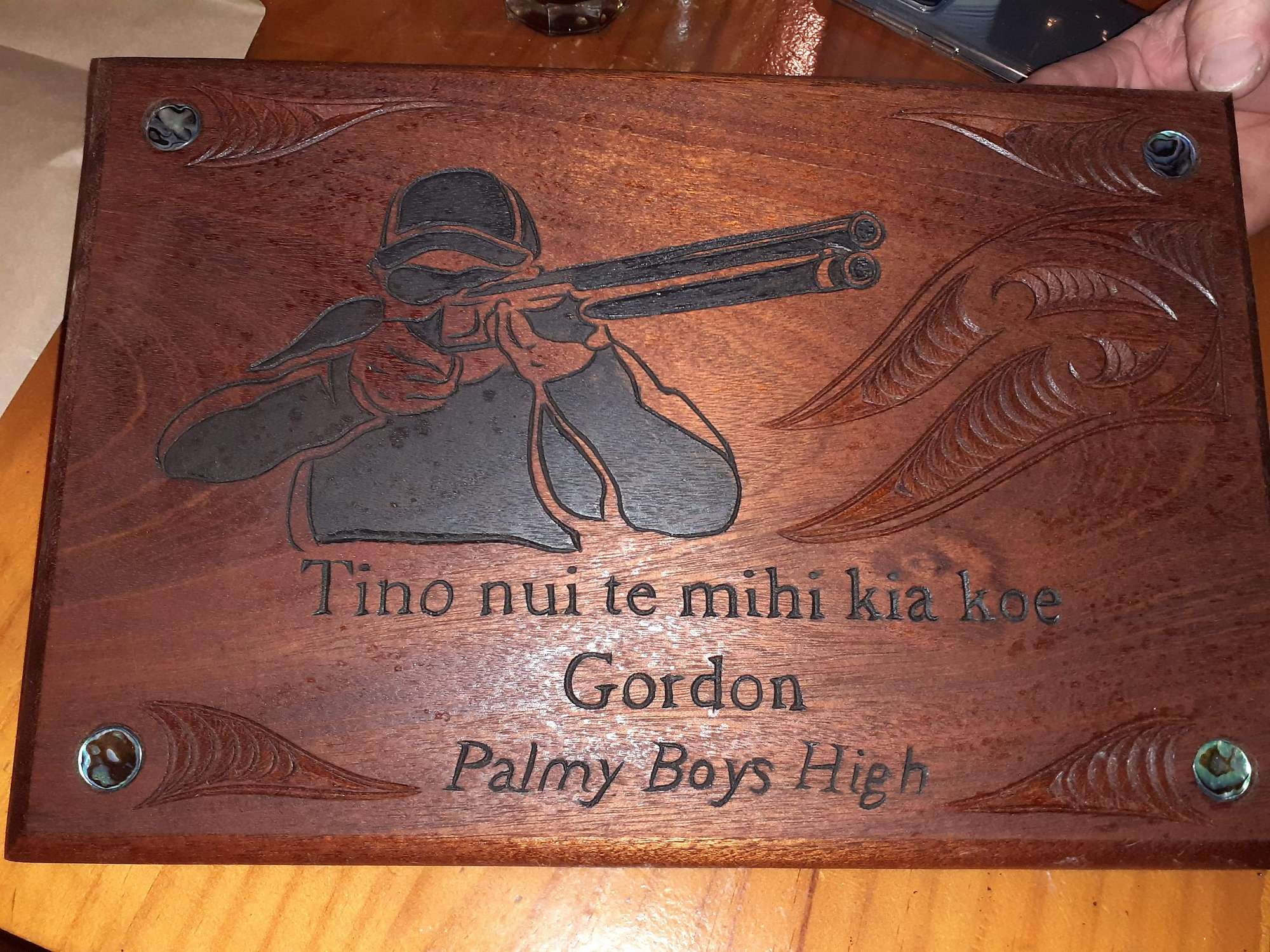 At the recent Clay Target Shooting Team's prizegiving dinner a presentation was made to master coach Mr. Gordon MacPhee in recognition of the 35 year's service he has provided to the young men of Palmerston North Boys' High School - a significant contribution to the hundreds of young men involved in clay target shooting throughout this time.