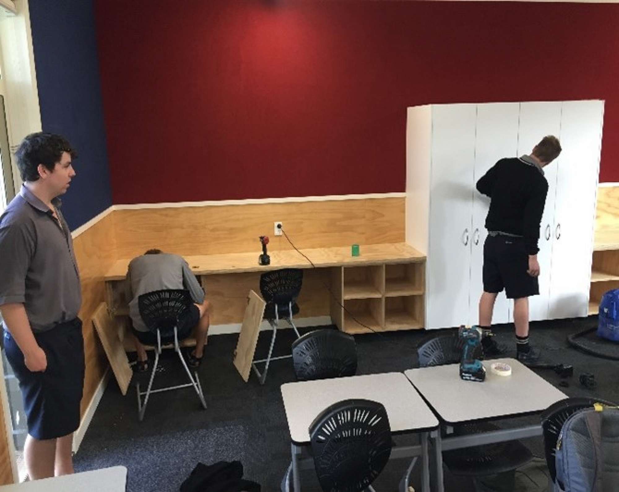 This year as part of the Year 13 Joinery course students were given the opportunity to make and install joinery in the newly built P5 classroom. It provided students with a great opportunity to go through the processes of an authentic joinery project. This involved liaising with the client, planning, designing, manufacturing, and installation of the cabinets. The cabinetry was manufactured and set up in the workshop prior to installing. The was new to the class, as it was the first time they worked on a “job site” as opposed to working in the workshop. This project gave students valuable experience in the process of completing a project from the planning to the installation stages.