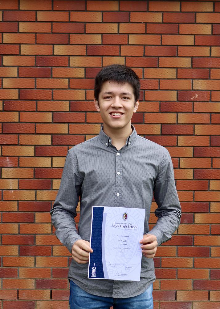 Alex Cole, the 2021 Dux Litterarum - one Scholarship (Physics) and two Outstanding Scholarships (Calculus, Chemistry). Subsequent to the release of the New Zealand Scholarship results Alex has been named as the recipient of an NZQA Outstanding Scholar award, placing him in the top 60 – 70 students nationally. As the recipient of an Outstanding Scholar award Alex will receive $5,000 per year for three years towards his tertiary study.