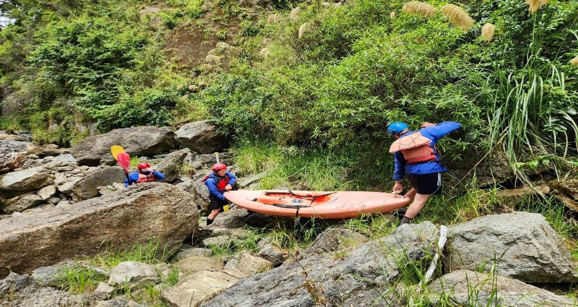 Mid–morning we left for River Valley, an hour North of Taihape, on a slow and winding road. We were very excited to get onto the river but were soon slowed by two Grade 3 rapids that we had to avoid by portaging the kayaks. The guides safely took the three rafts over these, and Mr Sawyer used his experience to take his kayak over as well.