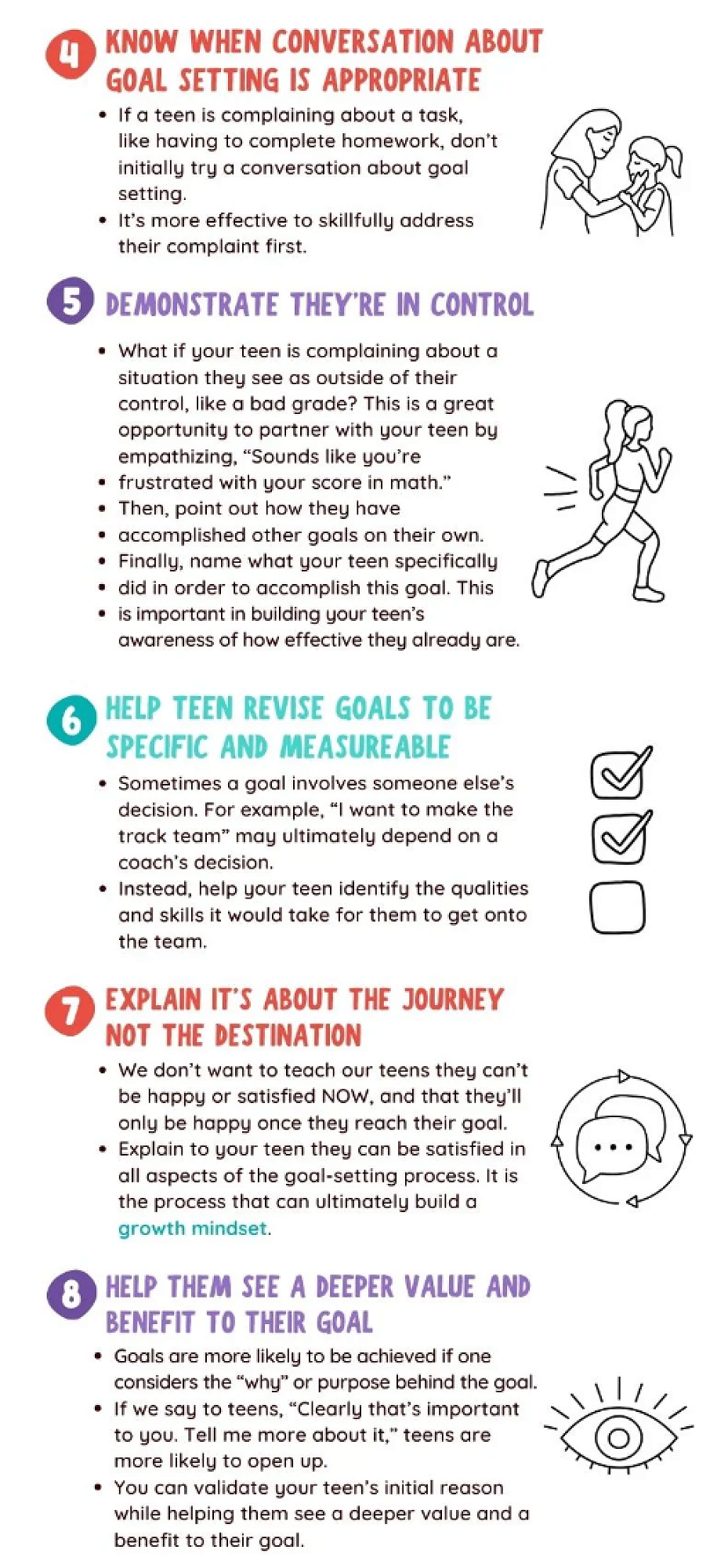 If done without planning and intention, a goal could inadvertently hurt a growth mindset. Teens might fail with a vague or lofty goal and then think, “See? I can’t do it anyway.”