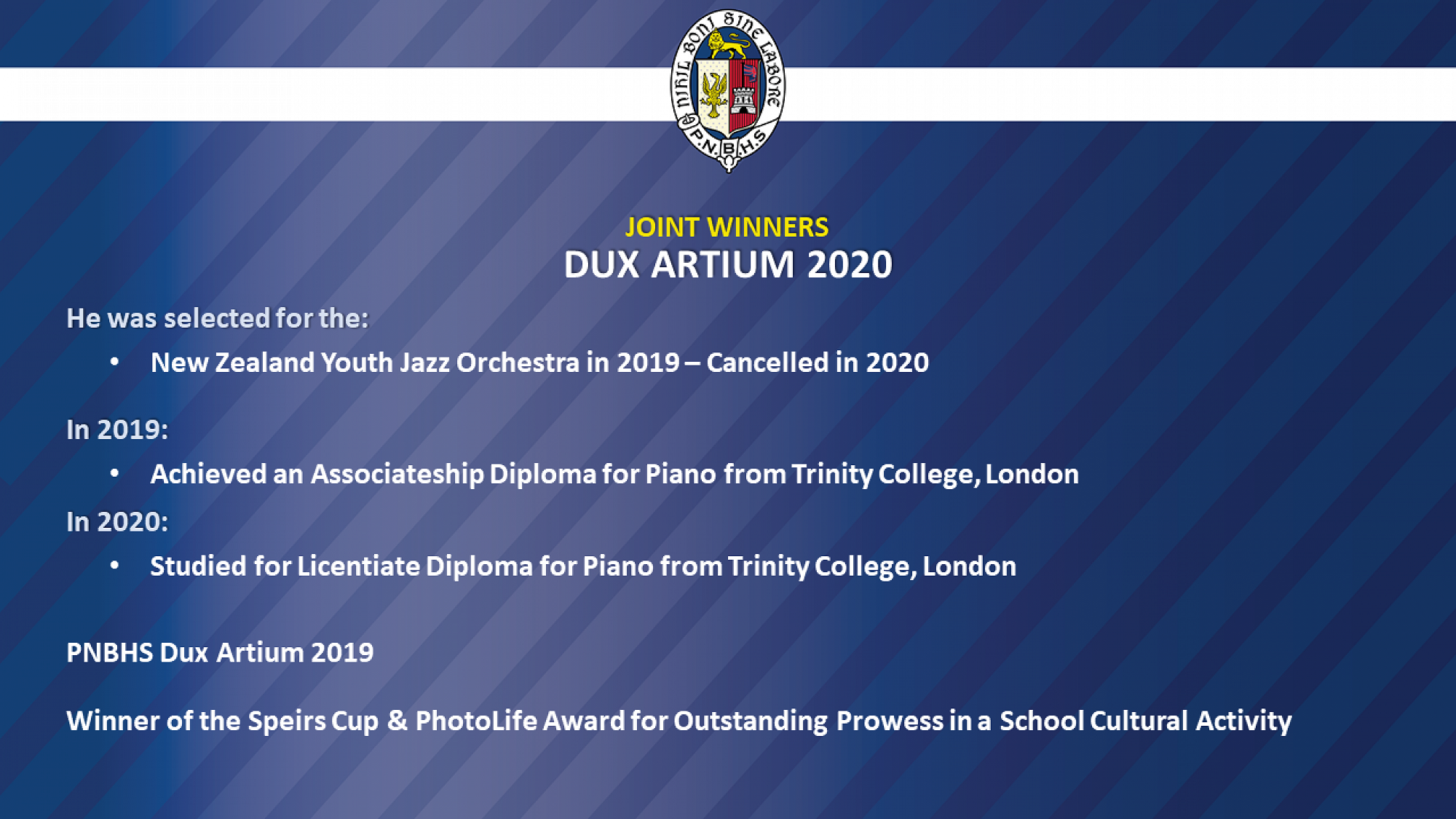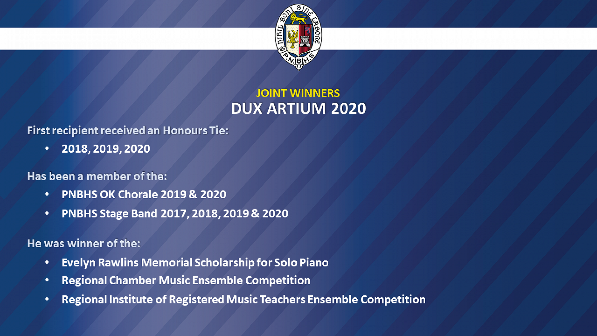 Congratulations to Deputy Head Prefect Ciaran Carroll, who was named Dux Artium for 2020 at the recent Senior Prizegiving.