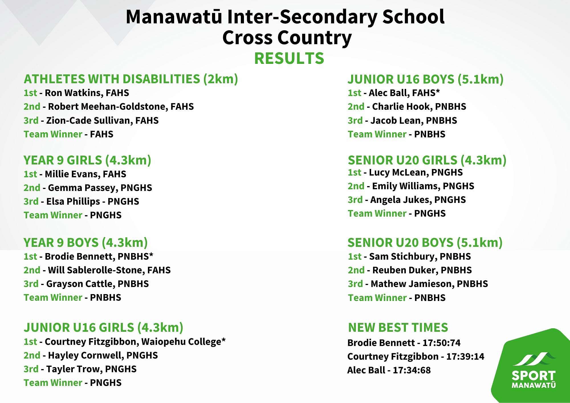 Congratulations to Brodie, whose winning time of 15:50:74 was a new Manawatū Secondary Schools Cross Country record.