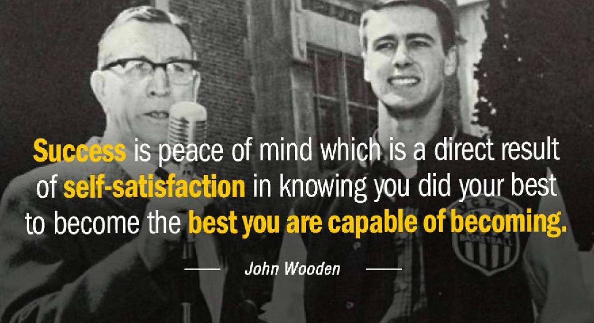 In answering the question 'How do you take pride in yourself and your work?', well-known American Basketball coach John Wooden, a strong advocate of selflessness and putting others ahead of yourself, advised his players is to change their definition of success: "Success is peace of mind, which is the direct result of self-satisfaction in knowing you made the effort to become the best that you are capable of becoming." Dedicating ourselves to becoming the best version of ourselves that we can is hard work, but it is work we can be justifiably proud of.