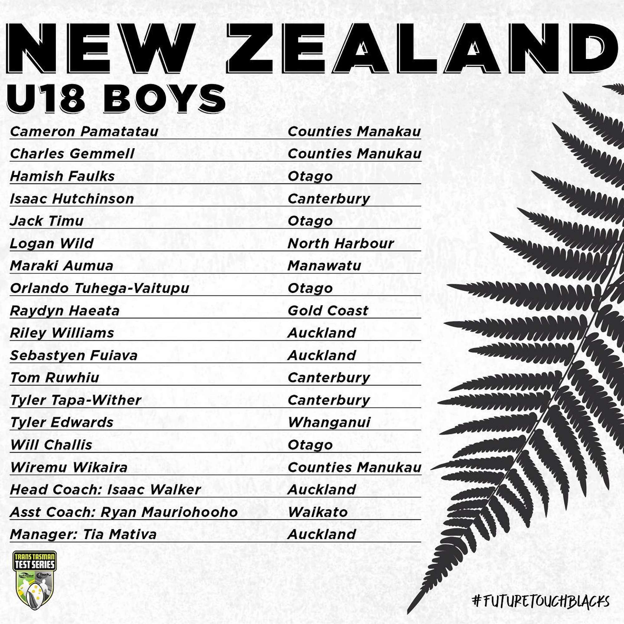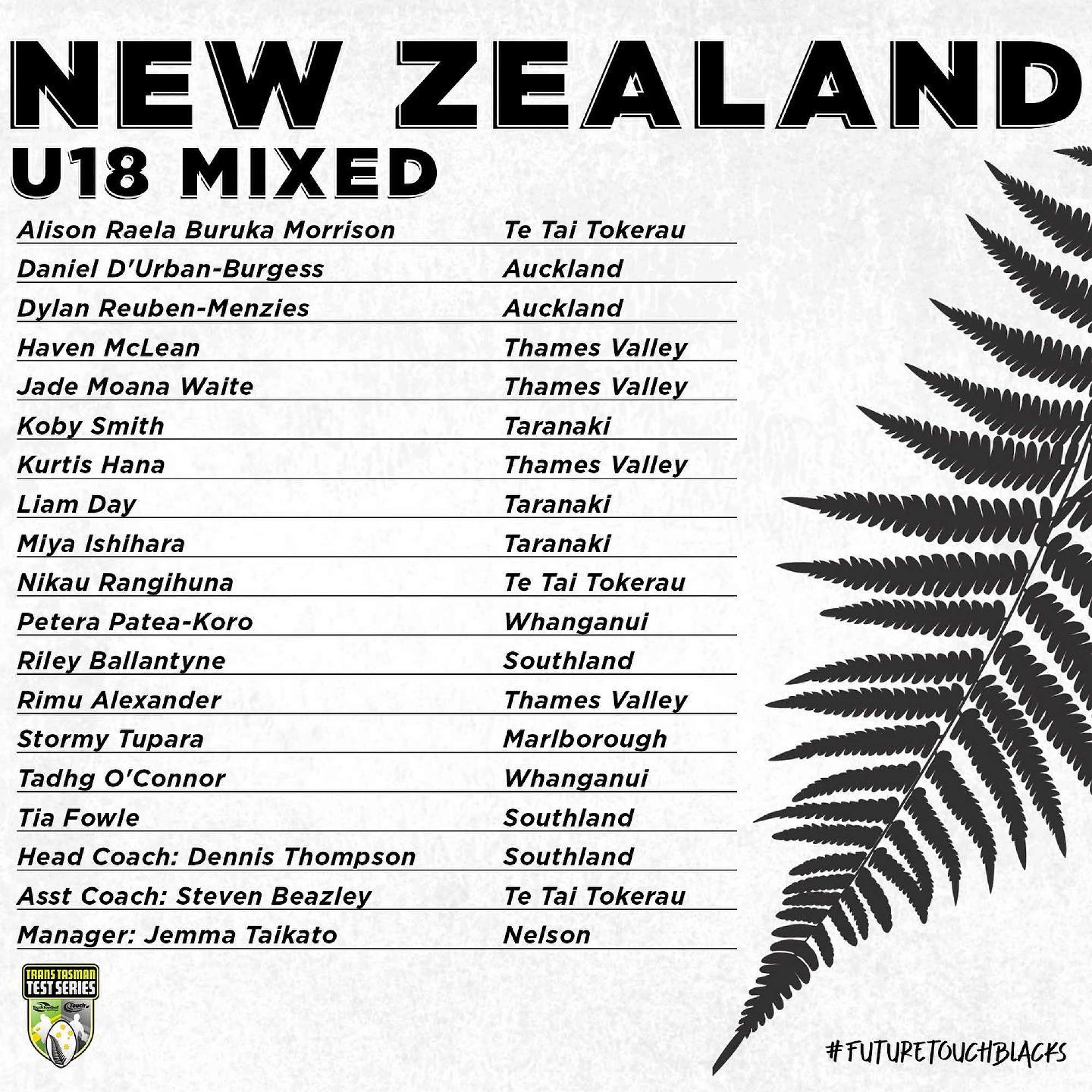 Congratulations to Maraki Aumua and Tyler Edwards, who have been selected in the New Zealand Under 18 Boy's Touch team and to Tadhg O'Connor, who has been selected in the New Zealand Under 18 Mixed Touch team, for the Youth Trans-Tasman Test Series to be held in Christchurch in April 2022.