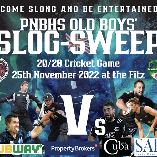 T20 Cricket at Fitzherbert Park Featuring our Old Boys. Half-time entertainment by Levi Sherwood and his team. Come along and join the fun. Friday, November 25th.
