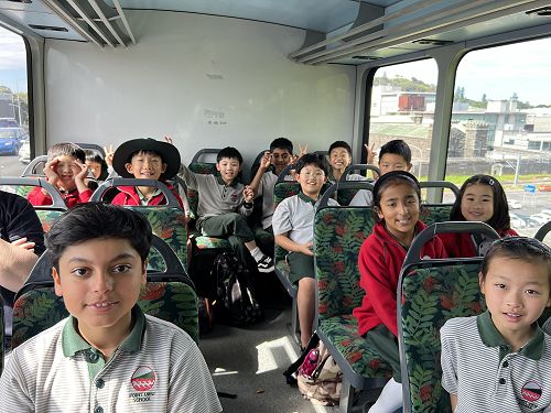 In Week 4, music students attended the Kiwi Kapers concert by the Auckland Philharmonia Orchestra in the Kiri Te Kanawa Theatre, Aotea Centre. The theatre was full of primary, intermediate and secondary school students, most of them would have never heard an orchestra perform live before! An amazing opportunity for Point View students to hear "The Bookbinder" theatrical story intertwined with music from great composers like Mussorgsky's "Night on Bald Mountain", Ravel's "Danse du Rouet et Scène"