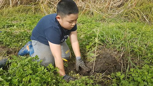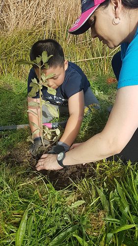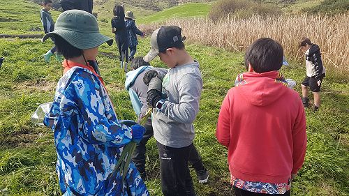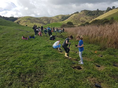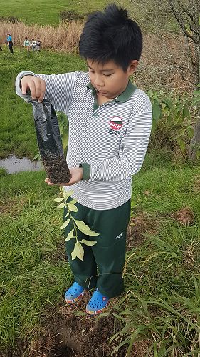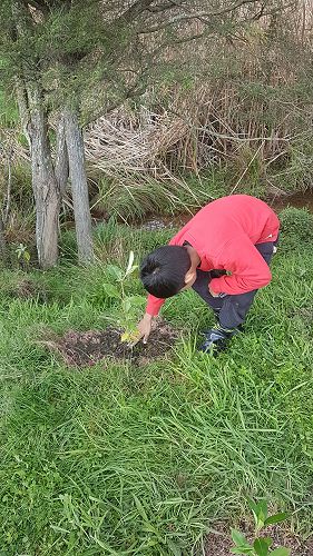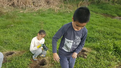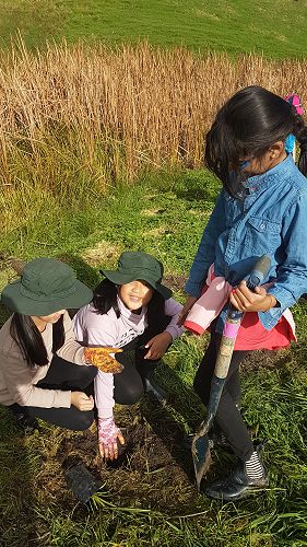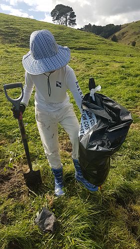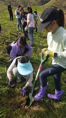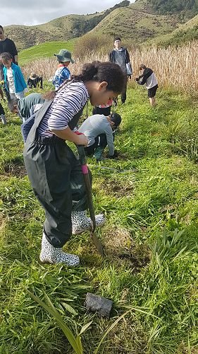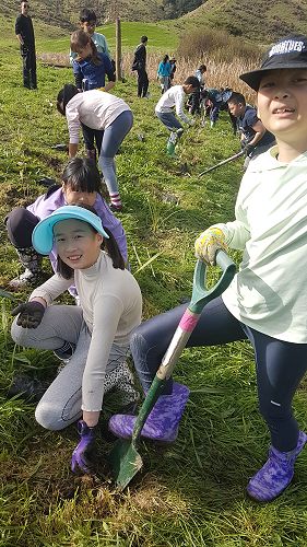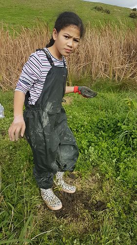 To get to the planting area, we had a tiny “ferry ride’ on hay bales positioned on tractors. At the planting area, a bunch of diminutive plants that were planted in rectangular soil patches in pulpy bags were scattered all around. Everyone buddied up and soon spades were flying and we were diligently at work. The digging part was probably the toughest for most people, including me. After holes were dug, we would carefully take the plants out of the bags and place them up straight in the trenches. The next step was covering it up. I was not prepared for this part - I didn’t have gloves! I was lucky I had a buddy to count on. After surrounding the plants, it would be time for the last step. The pūkeko test. Our instructors explained that pūkekos would try to pull up the plants, which was why we had to do a tiny tug on the end of our plants, to see if it was foolproof. Our tough work paid off.
