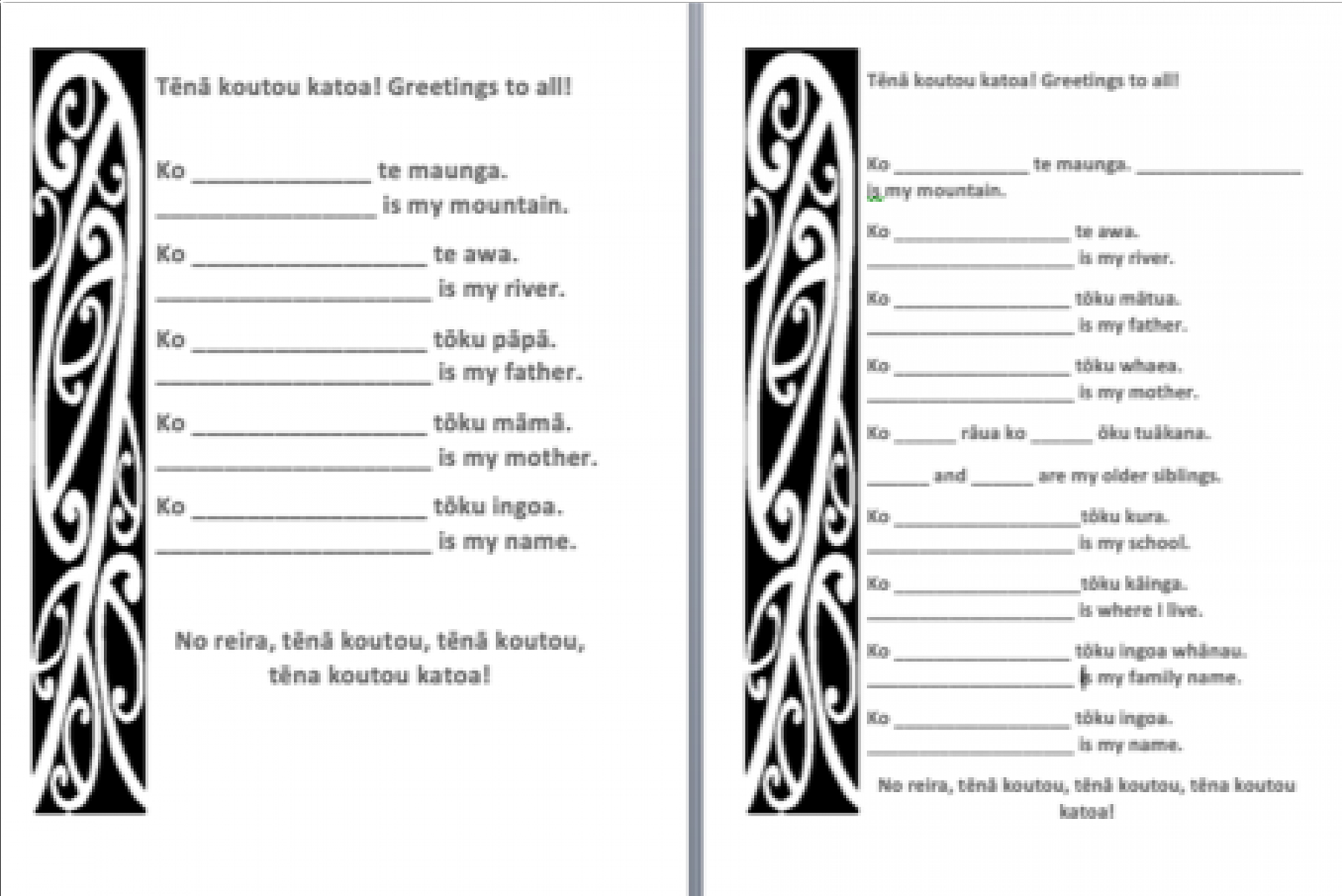 What: At Ōhoka School we start with a simple pepeha and as the student progresses through the school, they add more detail. This enhances their knowledge of their whānau and where they come from.