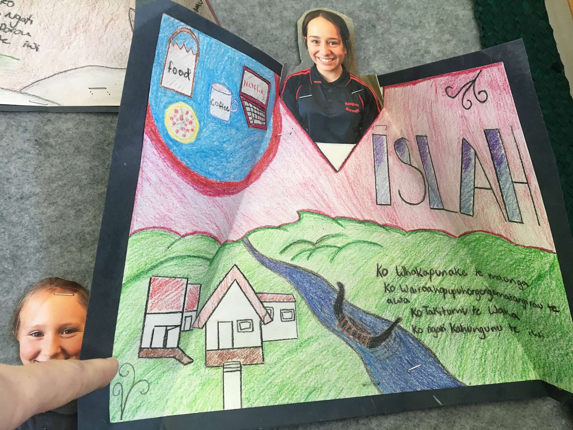 How: Students create a visual display of their backgrounds and values, which is attached over a photograph and can be folded to create a kakahu, appropriately decorated on the reverse.