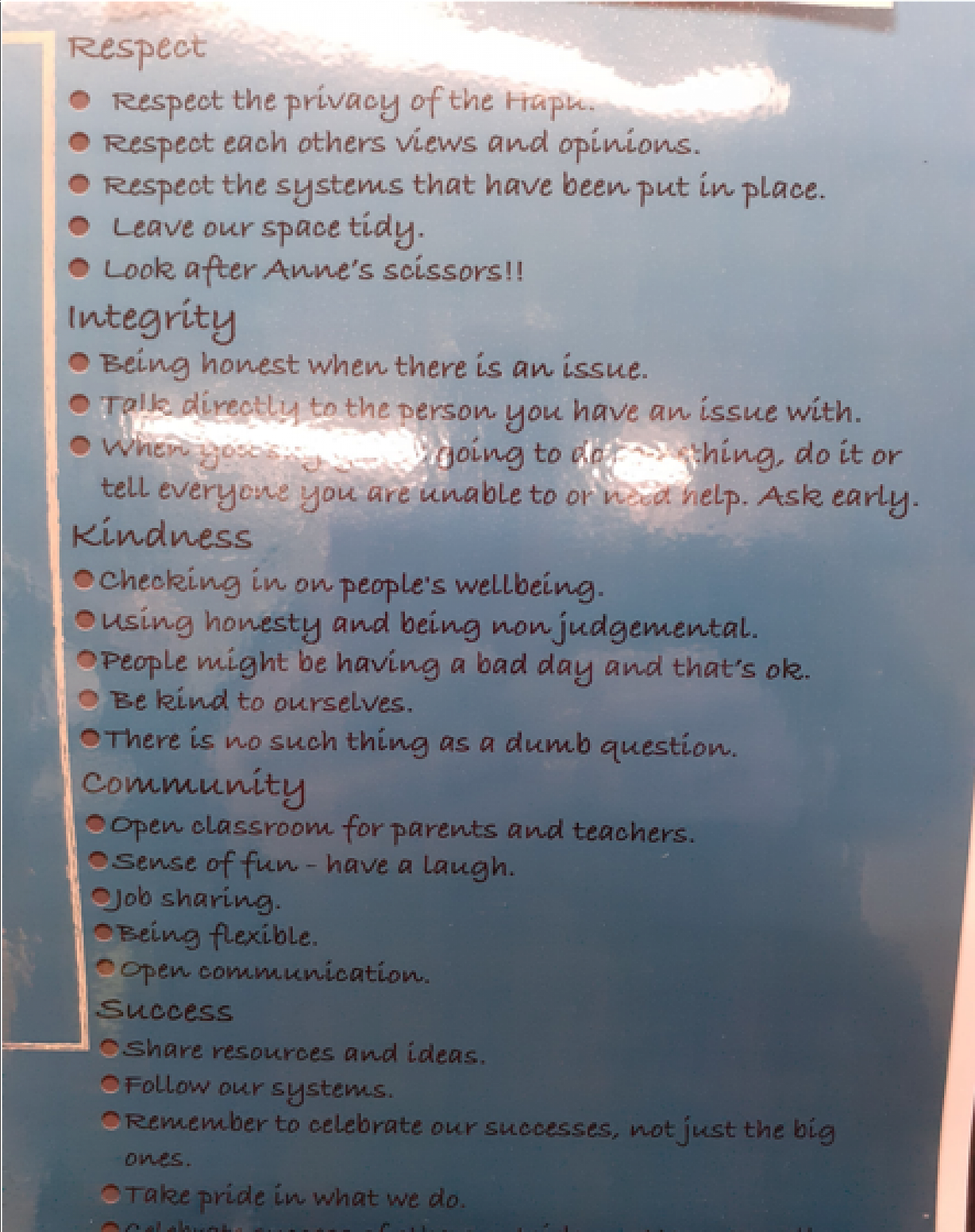 Kaiako collaborate to produce a MATES agreement. Ākonga could do the same for a variety of learning areas eg. playground, sports teams, classroom etiquette.