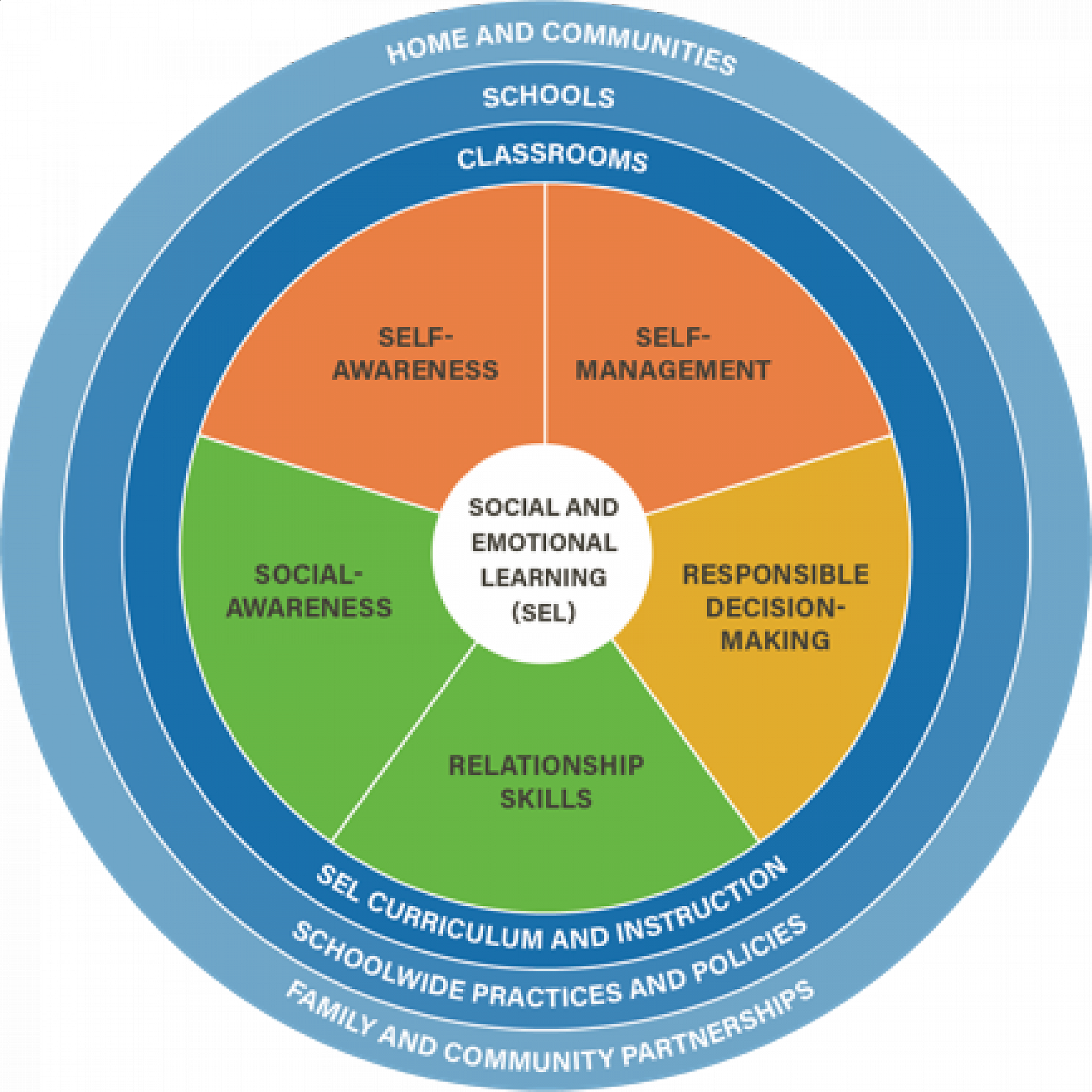 A framework for social and emotional learning (SEL) developed by the Collaborative for Academic, Social and Emotional Learning (CASEL).