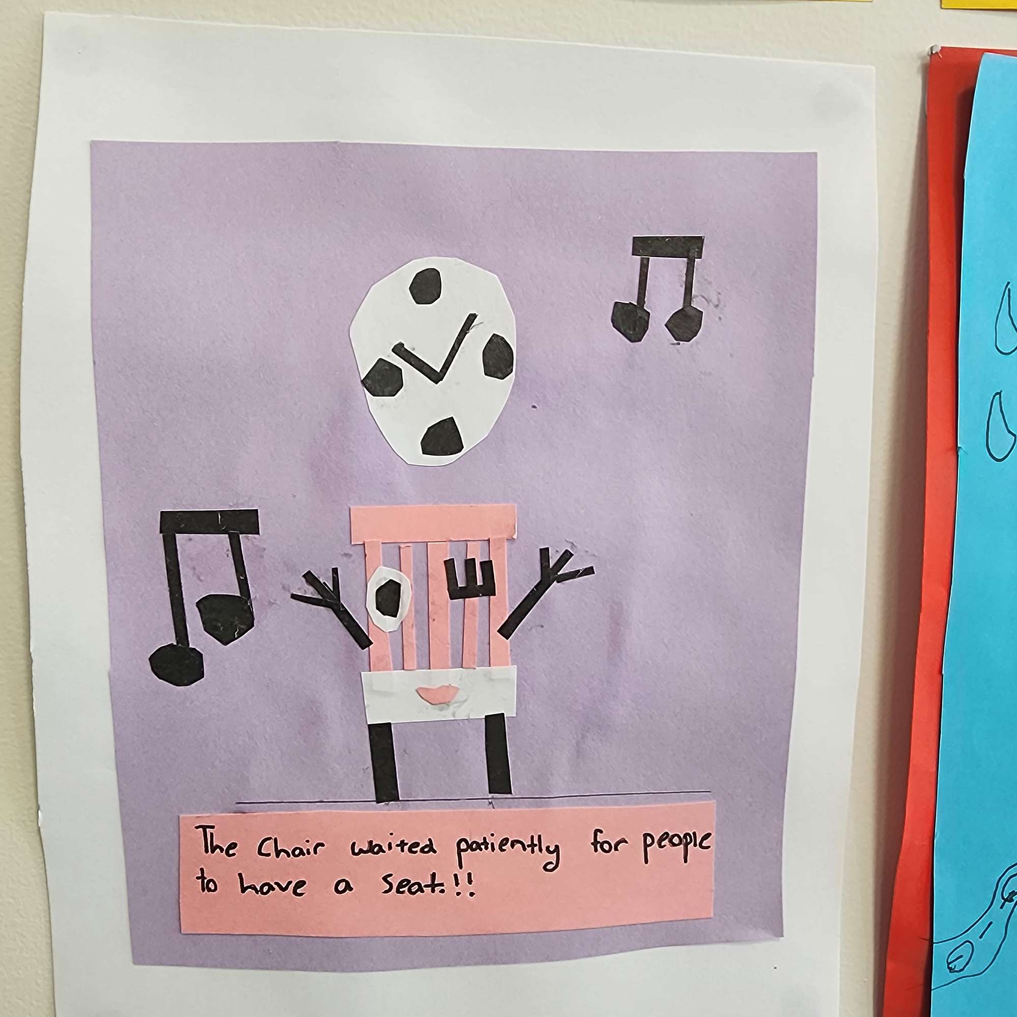 Last week we looked at personification. Personification is where you give human qualities to an object. We each created a piece of artwork showing personification to help this idea stick in our heads! Be sure to check out all the artwork on our wall the next time you pop in.