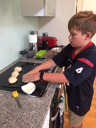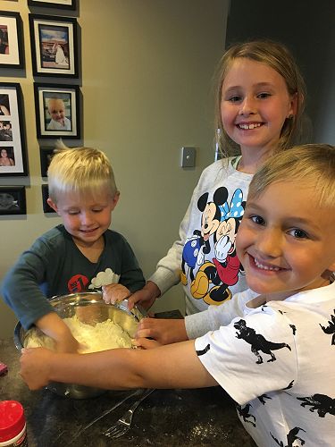 Harper, Oscar and Boston Mitchell Doing baking at home.