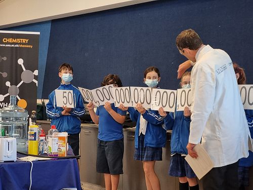 We learnt about how all things, including ourselves are made up of molecules. We also learnt about acids and alkaline and that carbon dioxide is denser than air. We learnt all this through some amazing experiments and the children were fizzing after their session with the Professor.