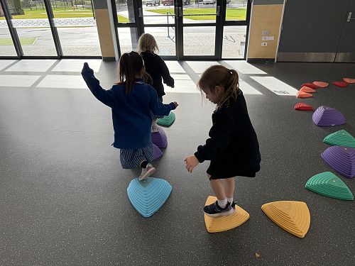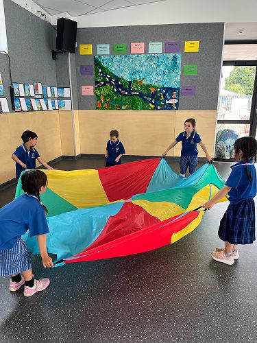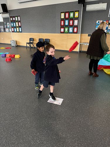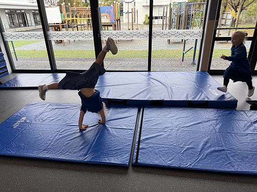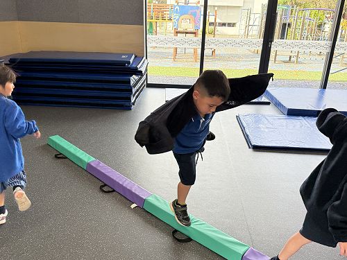 Some of the activties we have set up involve low balancing equipment, parachutes, bean bags for throwing and soft mats for rolling, jumping and tumbling.