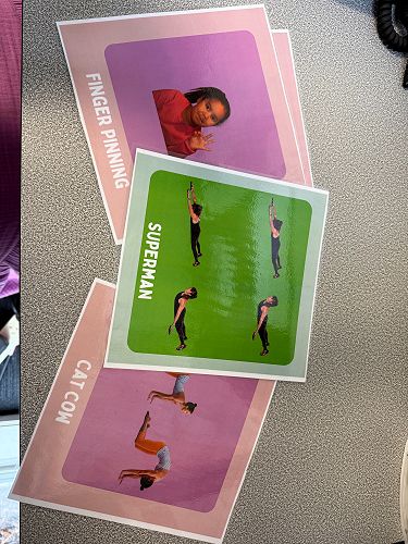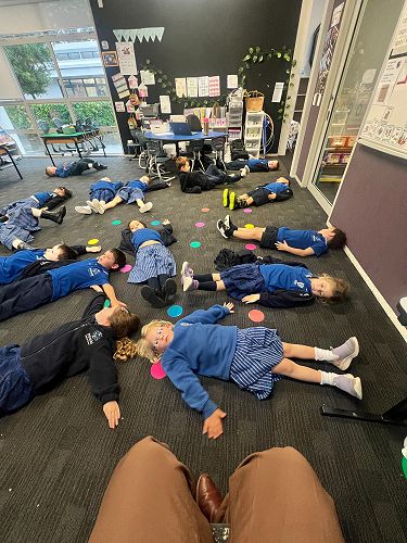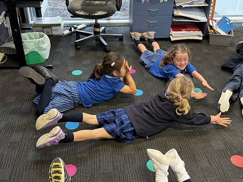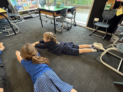 The Junior children have been learning and participating in a range of rythmic movement excercises including "Crab Pinches" with their fingers, a "Superman" movement on the floor, "Cat and Cow" pose (like the yoga movements), Snow angels and Mountain climbers. The children have been very engaged in these sessions and have already shown great improvement in their ability to perform these movements.
