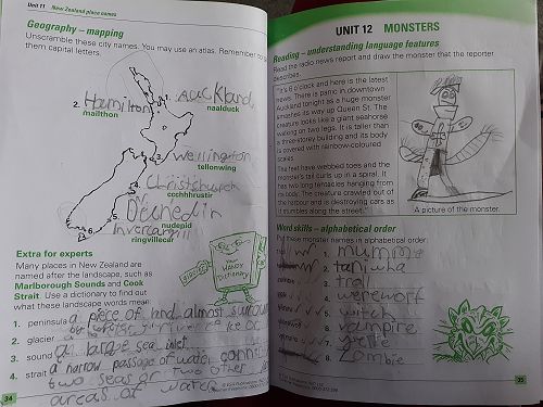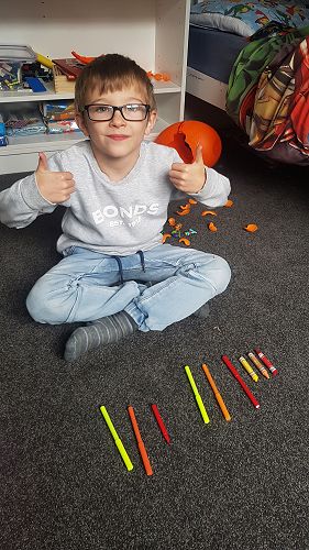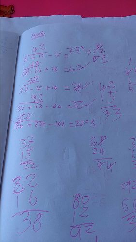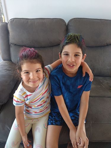 Rohaan from Room 8 and his sister with coloured hairand Rohaans has been doing his maths.