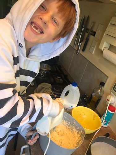 Cooper from Room 8 and Nate from Room 7 have been doing home exercise, cooking and school work.