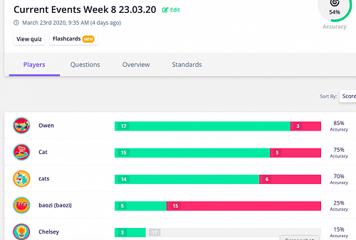 Several students from Room 10 completed a Quizizz on the Weekly Current Events quiz questions.