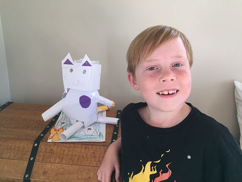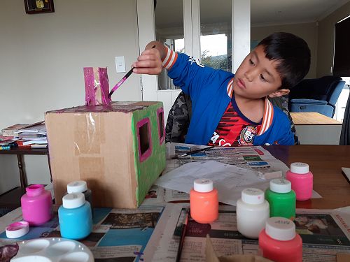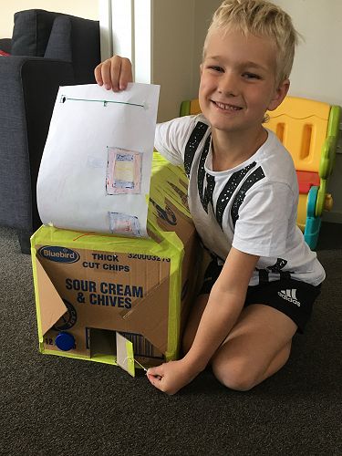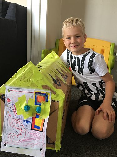 Leo from Room 8 has been busy making a lego creationand a cardboard museum.Tyler from Room 8 has been digging up carrots he grew for the Easter bunny!Rohaan from Room 8 has been washing the car and his sister!Owen from Room 10 wrote to his teacher Mr L. I hope you are keeping well, also Happy Easter! Yesterday on EasterSunday my dad did a Easter hunt for me, my big brother and my little brother. Sadly, I only found one but luckily it was the biggest one. My little brother found one and my biggest brother found eight but he gave us some... For the Bingo chart I did the one which says you need to make a house for the Elves but I needed some help.