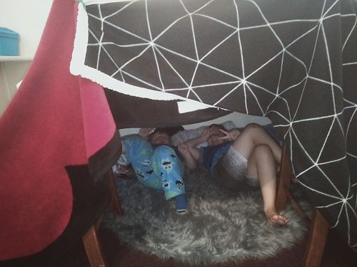 Today was hut building day for Taylor (Room 10) and his brothers. Boys built this hut this morning and made some comfy areas inside, bunkered down in there with some popcorn and their iPads to look at Epic and Prodigy.