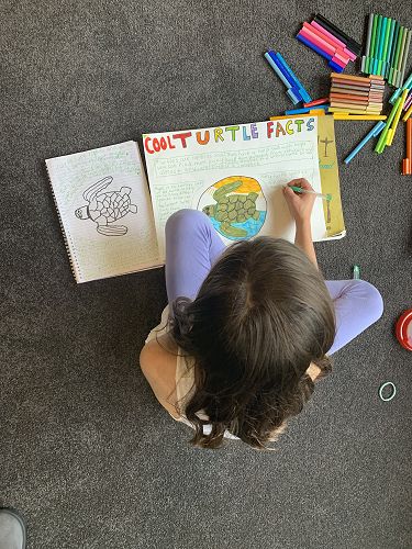 Natalie from Room 11 has been learning to sew at home and is making a sparkly cushion. Natalie has also been doing Yoga at home with her dog.Ella from Room 11 has been doing an Inquiry project at home - learning about Turtles. Ella has also been doing some maths practise at home.
