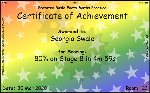 Georgia has been working hard on her Maths and is continuing to make great progress. She achieved this certificate.