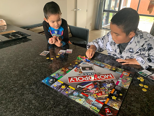 Oliver helped his younger brother Seb to learn his click words. They then had a game of Monopoly.