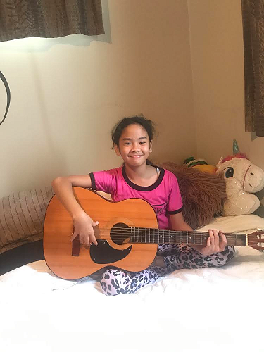 LJ has been learning the guitar! Her Dad has been teaching her and she is enjoying learning Filipino songs and spending quality time together.