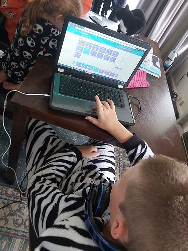 Maia (Room 23) and Kaiden (Room 17) have been working together using Disney Tiles to create words and put them together like scrabble. :)