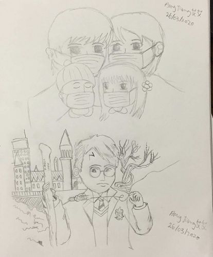 Amy from Room 21 loves Art. The family crest has been voluntarily completed as part of her Reading tasks before we went into isolation. Her other sketches are her own choice as it is something that she loves doing and she enjoys giving herself a challenge.