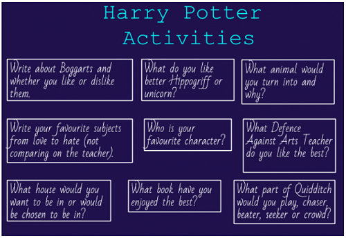 Zara has made herself some activities to link with the Harry Potter Book she is reading. Is anyone else reading Harry Potter Book #6?