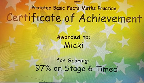Micki has been doing a lot of Steps and Prototec so far. We have a few workbooks at home so is also doing extra Maths and English work. Today she ran nearly 3km as she is trying to keep fit for the football season. She has also been baking, doing gardening and housework to help me out. She has spent a lot of time playing with her pet rats (Maggie and Lulu) too.