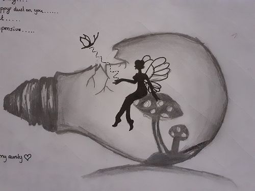 Here’s my artwork, my inspiration was my aunty. It’s her birthday this month and since she passed away I decided to draw a fairy on my calendar because she really liked fairies.