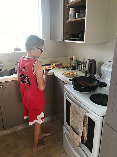 Devon has been busy baking today and also made Nachos for his family for dinner. He helped to entertain his younger sister Mia by building forts with her.