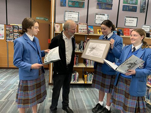 David Elliott, an ex-Queen's staff member, presented the school with one of his illustrations. He also donated two of his books Snark and The Adventures of Sydney Penguin to the School Library.