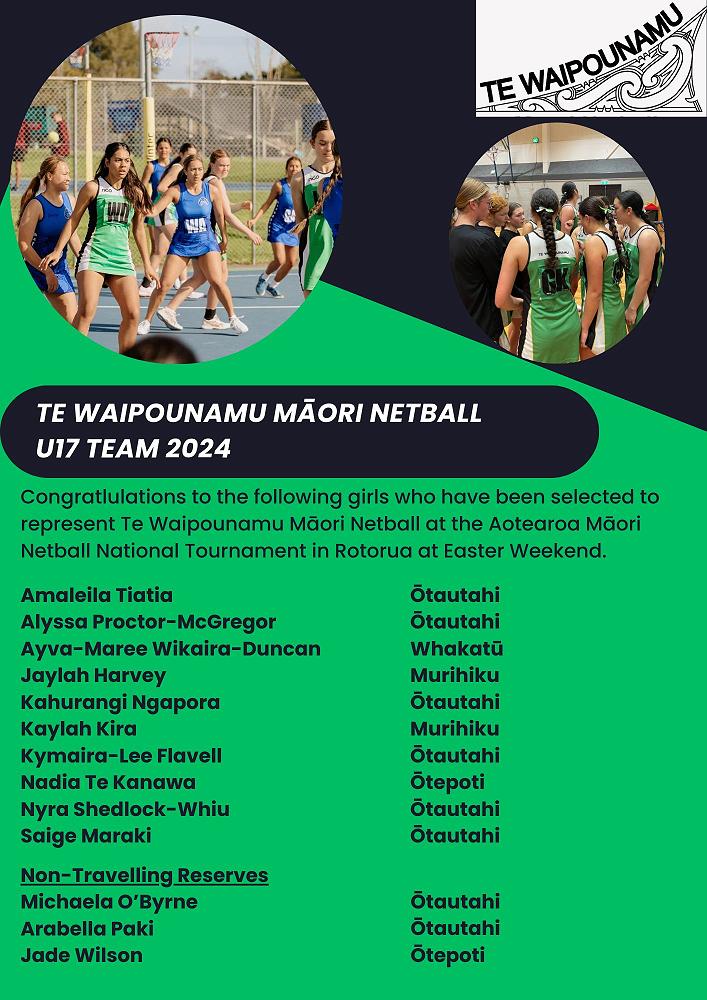Congratulation to Nadia Te Kanawa who has been named in the Te Wai Pounamu Māori Netball U17 team to play in the National Tournament in Rotorua over Easter weekend. Go well Nadia!