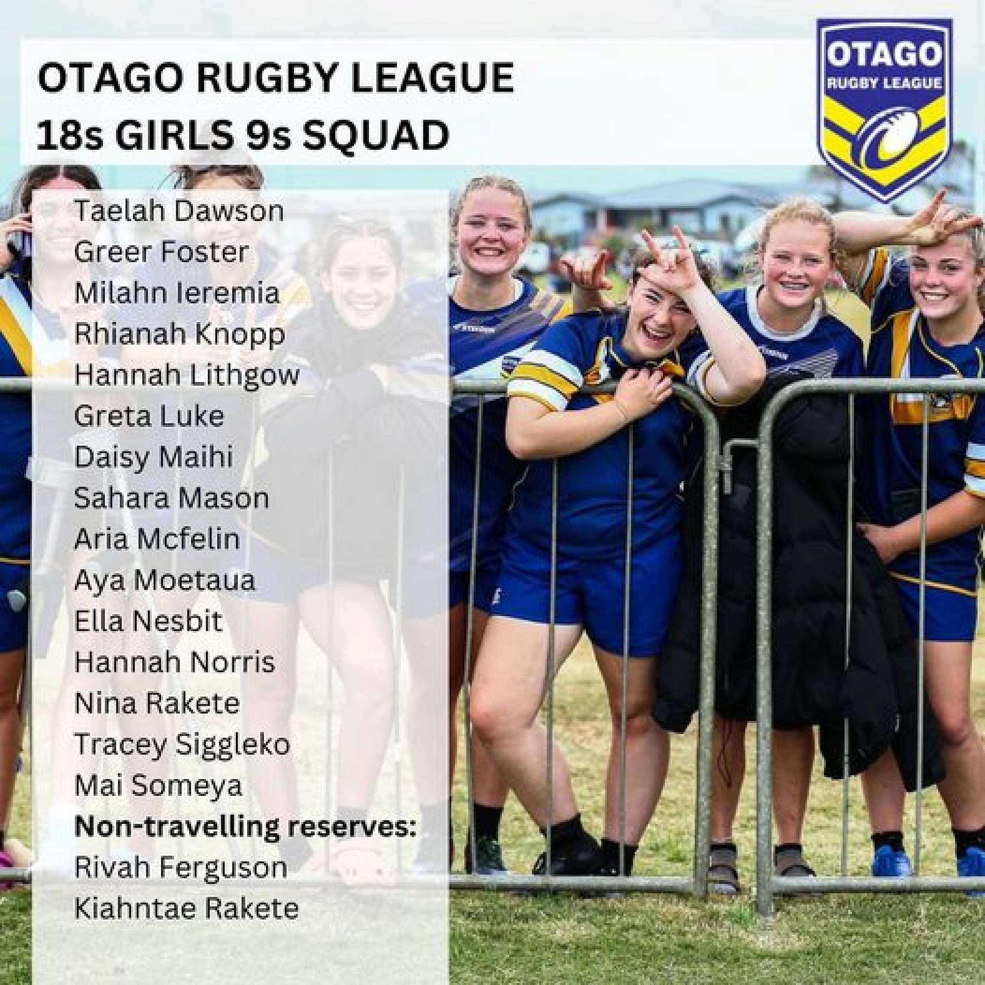 Congratulations to the many past and present students who have been selected in the 18s Otago Rugby League 9's Team. Go well at the upcoming tournament.
