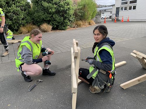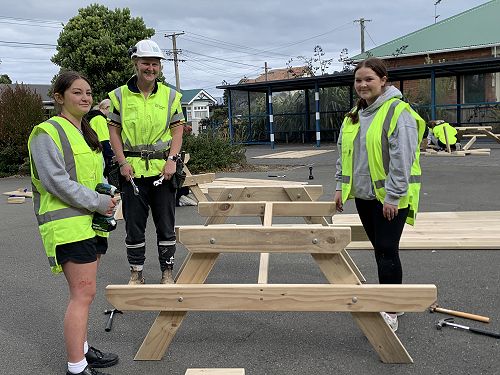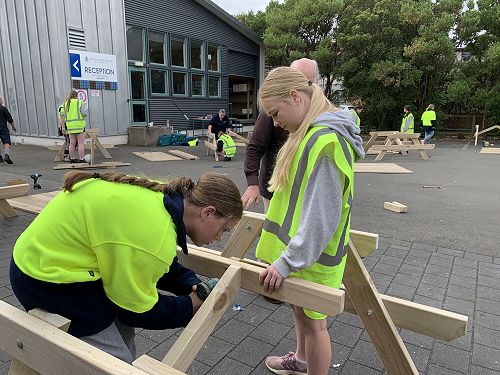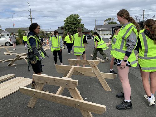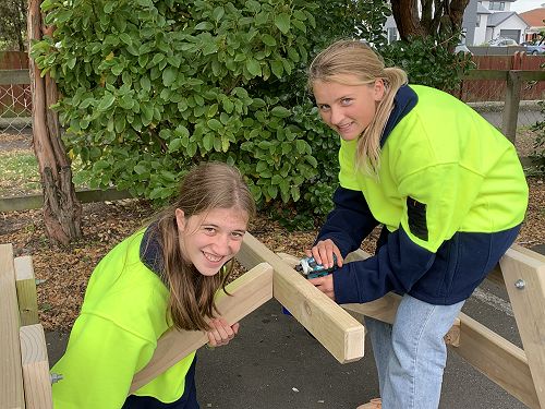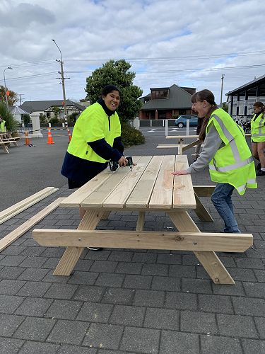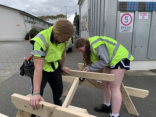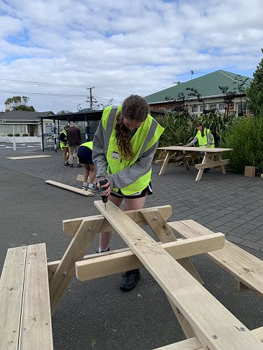 On the 5 April, 20 students from Years 9-13 joined together, with the support of ex-girl Phillippa Myers from PlaceMakers, along with two wonderful young women who are apprentices at Naylor Love - Ngaru Smiler and Greer Muir - to make 10 picnic tables for the school playing fields. Mr McMillan was a tireless supporter of the students, helping them in this activity too. The girls learnt how to assemble pre-cut pieces and how to use impact drivers to complete the task. Of course, they also learnt about following instructions, working with others, problem solving and resilience so they could find a way forward when things didn’t work as expected the first time.