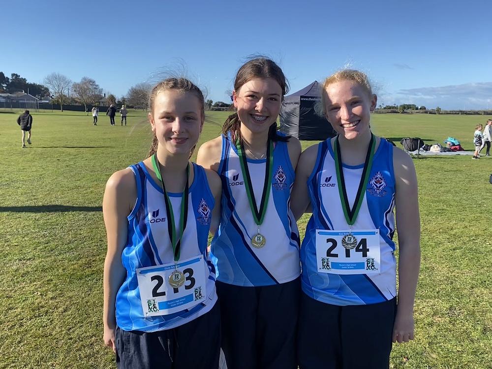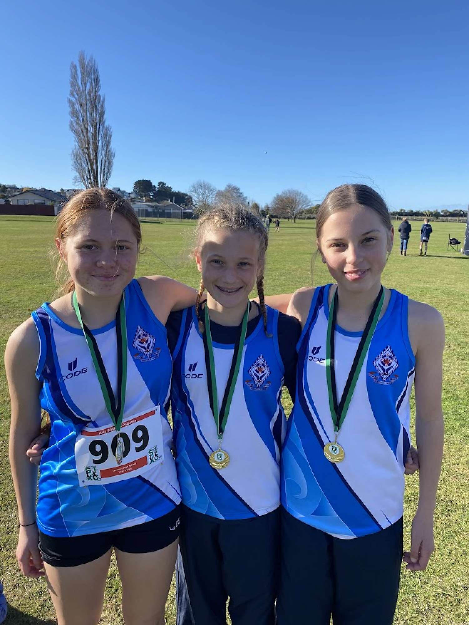 On Sunday the Cross Country team travelled to Timaru to compete in the South Island Cross Country Championships. At this event athletes raced over a challenging 3km course that included many hills. Queen's came away as the 2nd place girls school at this event. The year 9 girls team (Ora Winklemann, Sylvie Haig, and Aria Williams-Palaamo) won the teams event in their race and the U16 girls team (Eve Kelleher, Kotomiyo Cowell, and Elsie Munro) came second in their race.