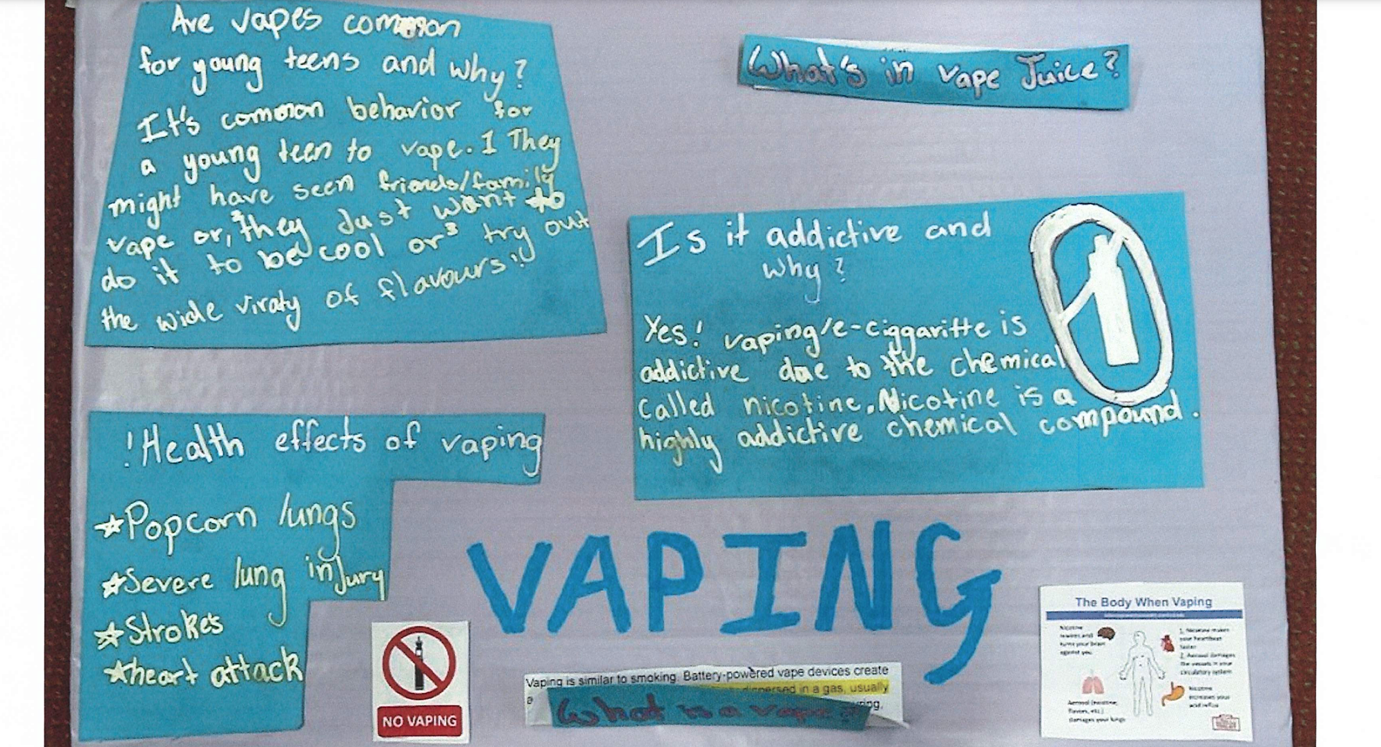 This article was written by a student in the senior school. We encourage conversations at home between parents and our older students about the effects vaping can have.