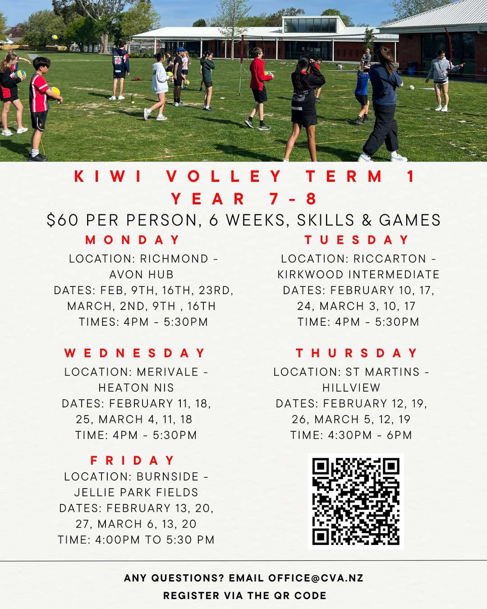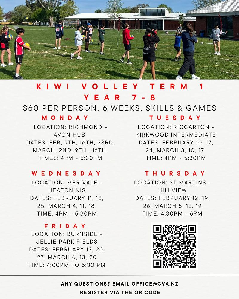 Registrations are now open for our KiwiVolley Term 1 2026 After School Programme.