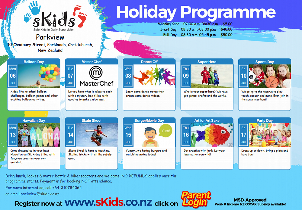 For more information, call +64-210784064 or email parkview@skids.co.nz
